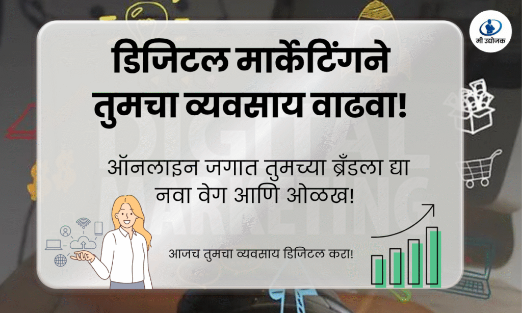 डिजिटल मार्केटिंगने तुमचा व्यवसाय कसा वाढवावा डिजिटल मार्केटिंगच्या युगात तुमच्या व्यवसायाला ऑनलाइन ओळख निर्माण करणे ही काळाची गरज आहे. वेबसाइट,